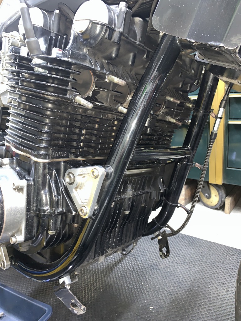 既存のタンデムステップボスを利用し、80年代風なルックスを再現すべく、ステーはアルミの厚板でシンプルに形成しました。