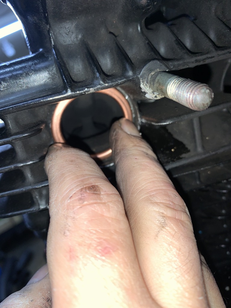用意されていたエキゾーストガスケットは一般的なサイズ。内径はポート径よりやや小さいので、次回は専用のガスケットを手配しないといけませんね。