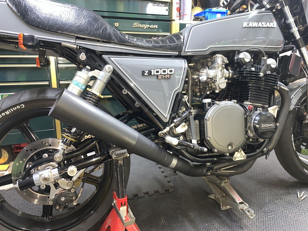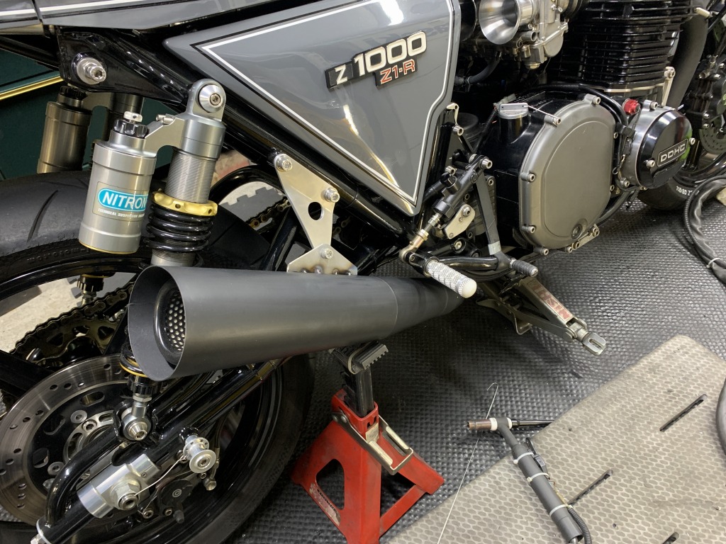 車体に取り付け、マフラーの加工は終了です。この後は、コノマフラーに合わせてキャブセッティングしたら完成です。