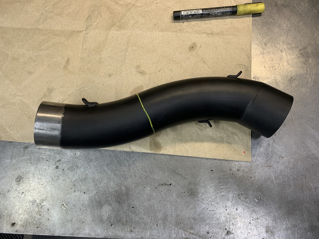 マフラー後半をあてがい、ご希望の角度になるよう加工箇所を検討します。
