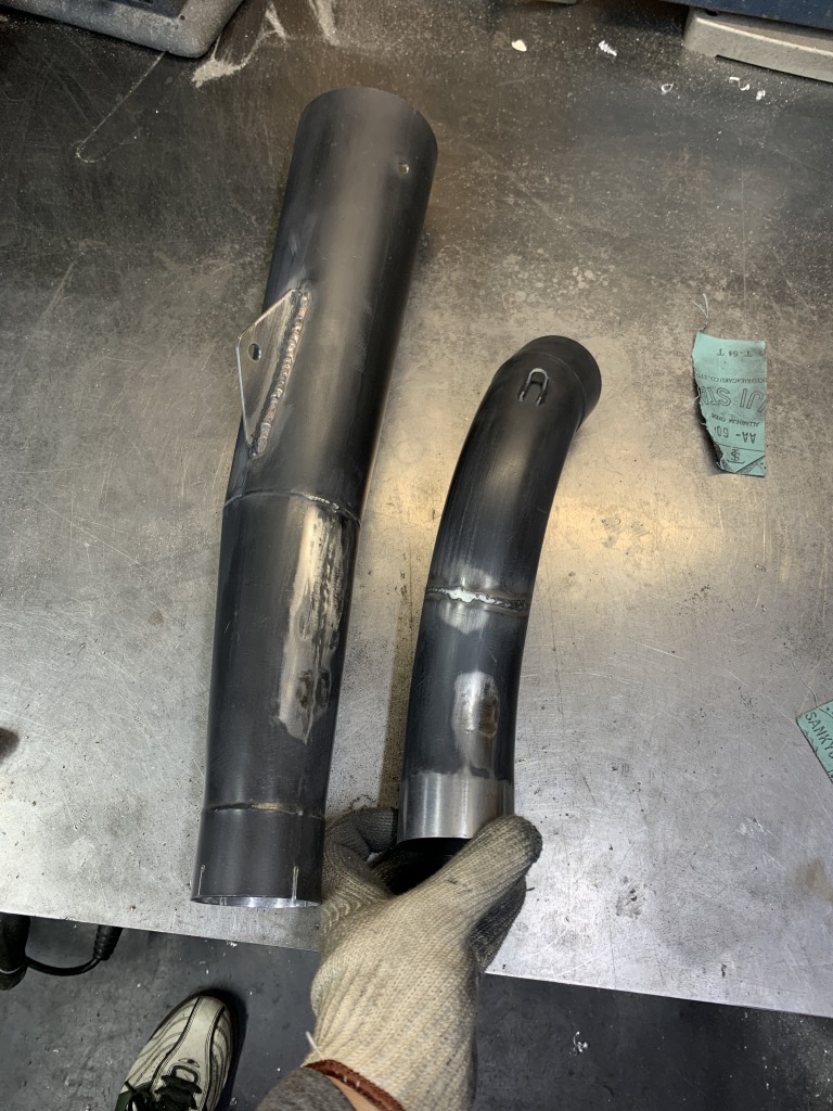 通常よりエンドで10センチほどカチ上げるので、中間パイプのつなぎ目で角度を変更することにしました。