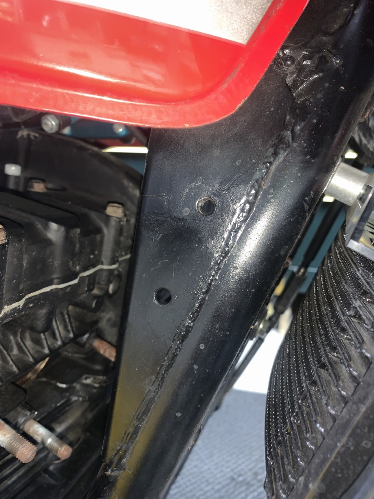 よく見るとフレームのガセットにクラックが。J系のフレームにはよくある部分です。