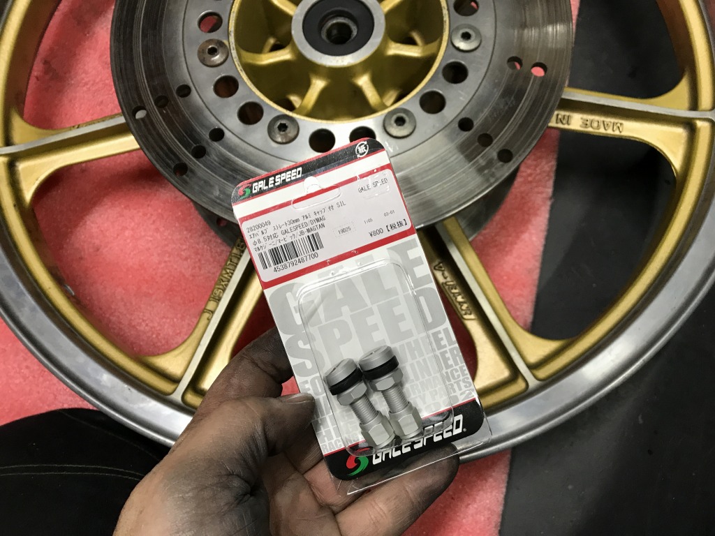 バルブはゲイルスピードのアルミショートタイプに新品交換します。
