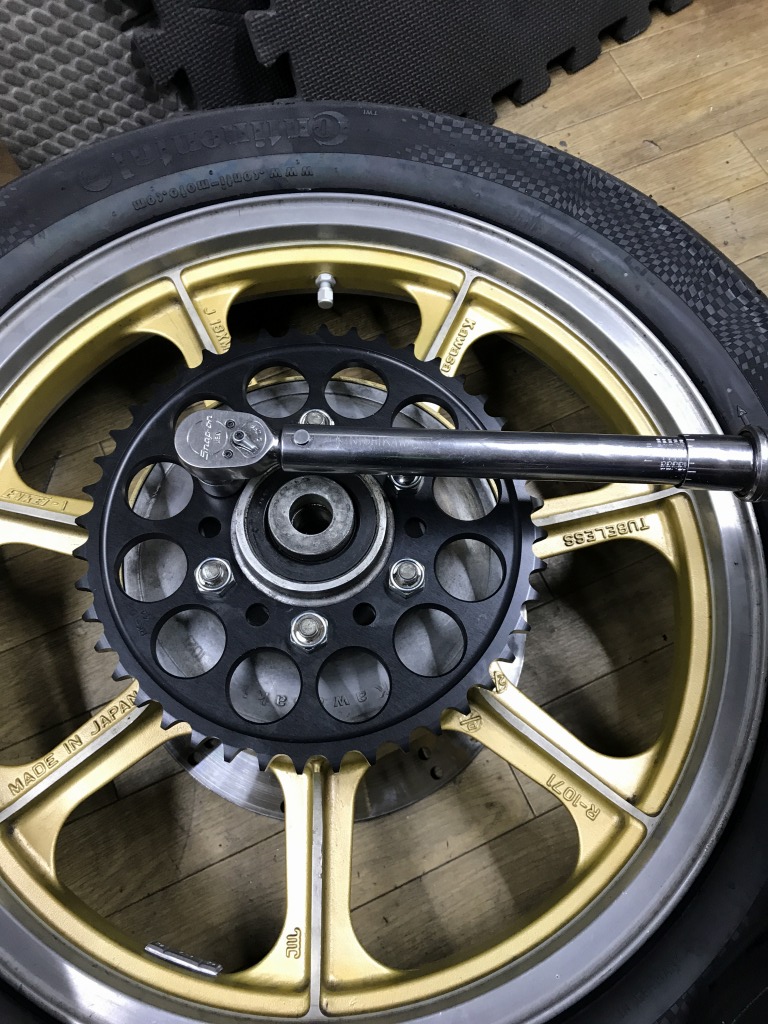 継続車検のご依頼です。合わせてタイヤとチェーンスプロケなどの消耗品交換も。