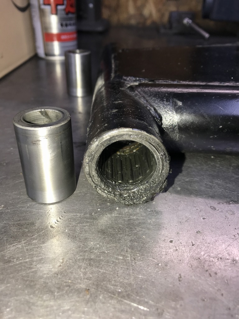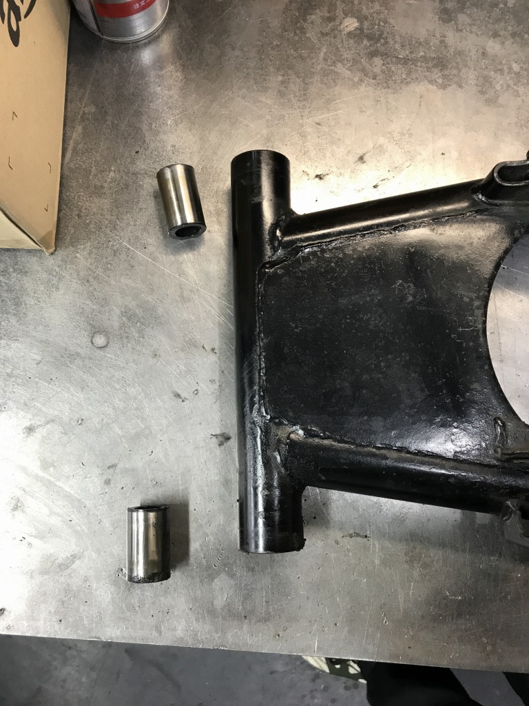 スイングアームは、ピボット部分にスラスト方向に大きなガタがあるので分解点検します。ピボットボルトの締め付けはかなり緩めでした。