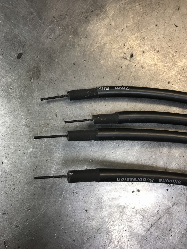 プラグコードのコイル側の準備ができました。あとは現車合わせで長さを決めてプラグキャップを取り付けます。