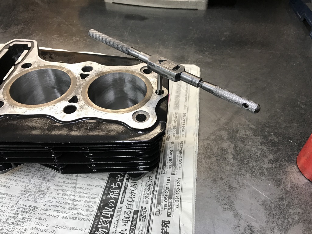 シリンダーのM6ネジは傷んでいるのでヘリサート加工します。