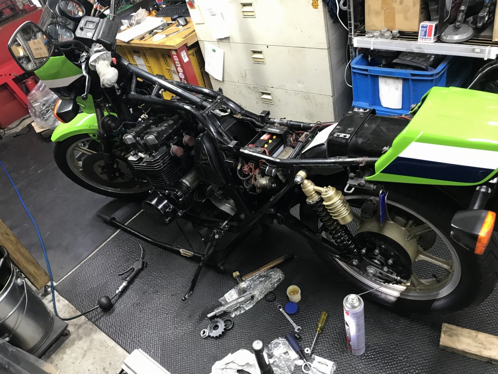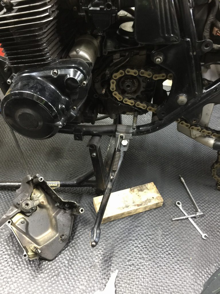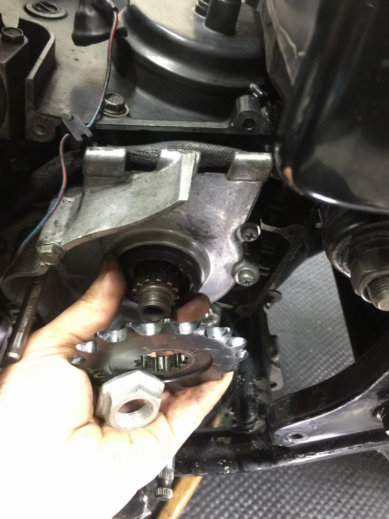 チェーンとスプロケは530にサイズダウンするので取り外します。