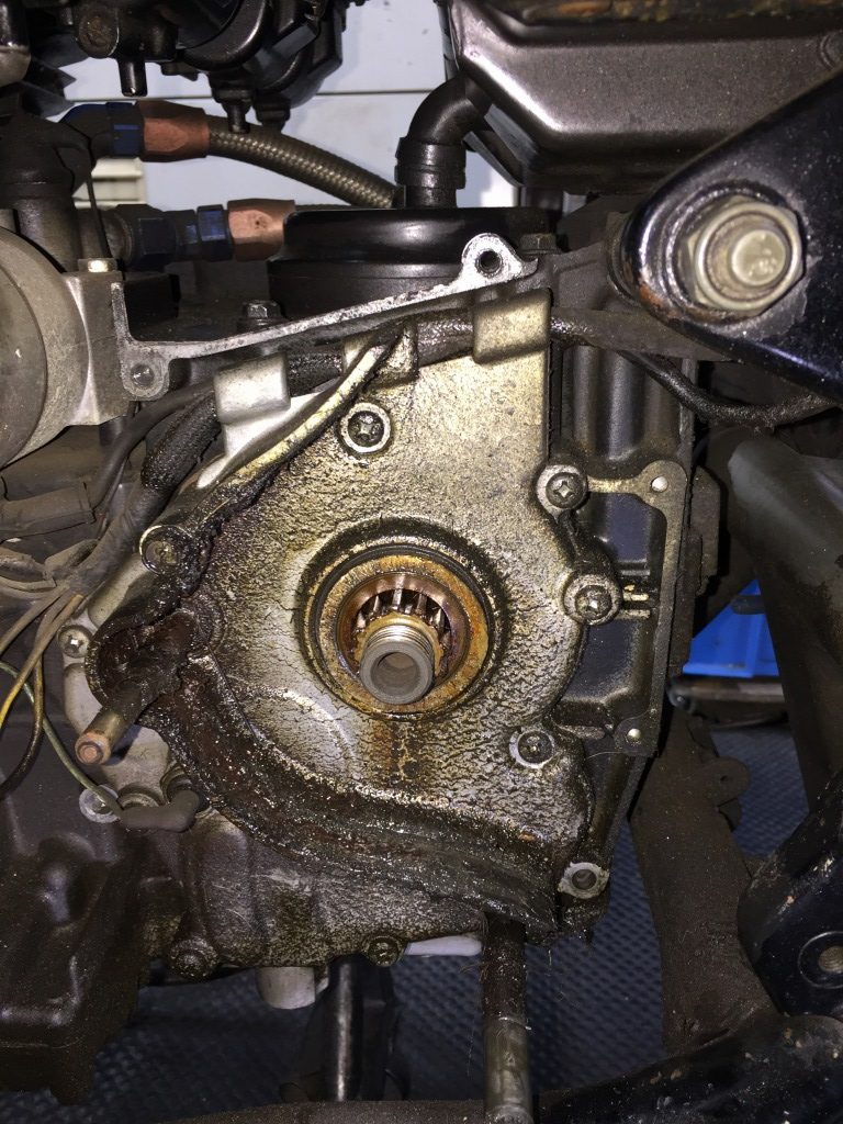 フロントスプロケット周りがオイリーですが、オイルシールからの漏れでしょうか。