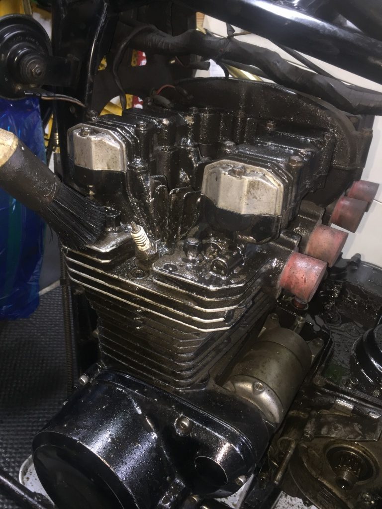 ヘッドカバーを外す前に、エンジン全体と周辺のフレームを洗浄します。