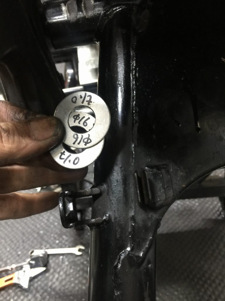 フレームにこれ以上負担を掛けないよう、スペーサーを入れて対処することに。