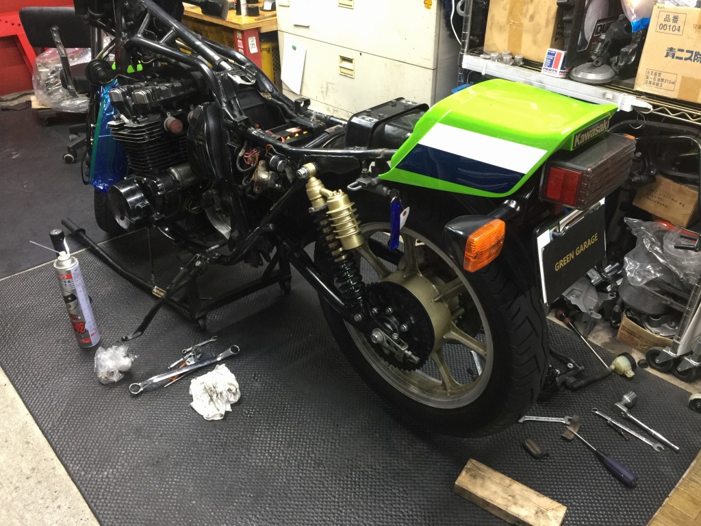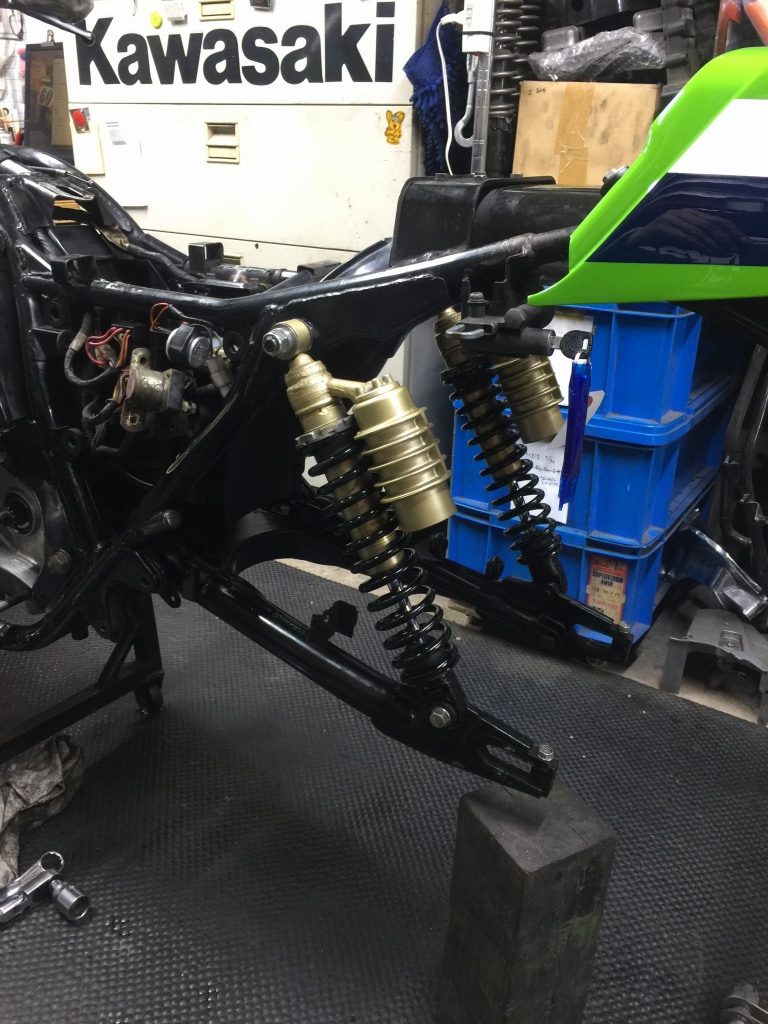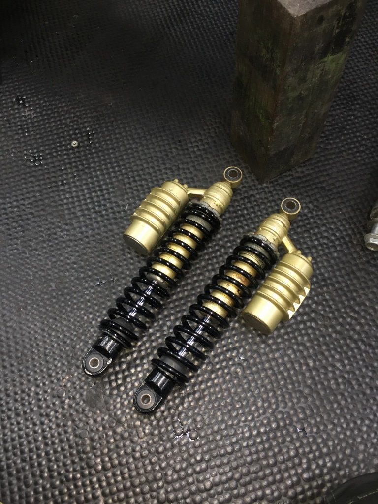 お持ち込みのリヤショックは、純正をオーバーホールしたものとのこと。