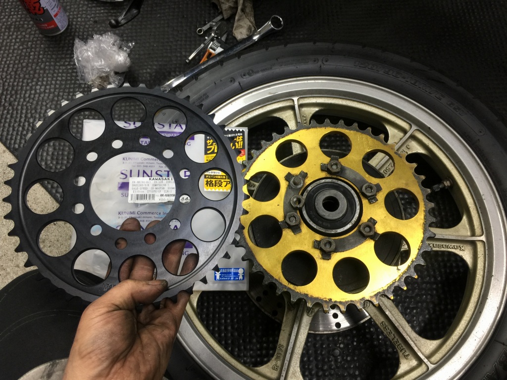 リヤスプロケットはサンスター製に交換します。