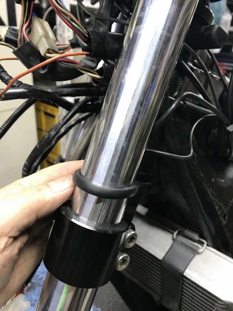 ライトステーは上下ステムで挟み込んで固定するため、純正同様下側にラバーダンパーを入れておきます。