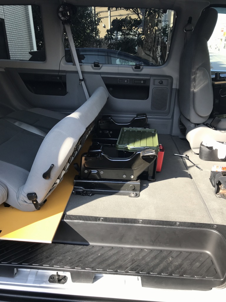 トランポとしてもキャンピングカーとしても、いろいろと電気製品が使えると便利です。そこでサブバッテリーを設置することにしました。用意したのはマリン用のこちらのディープサイクルバッテリーです。大きな充放電に耐えられ、耐久性も抜群です。