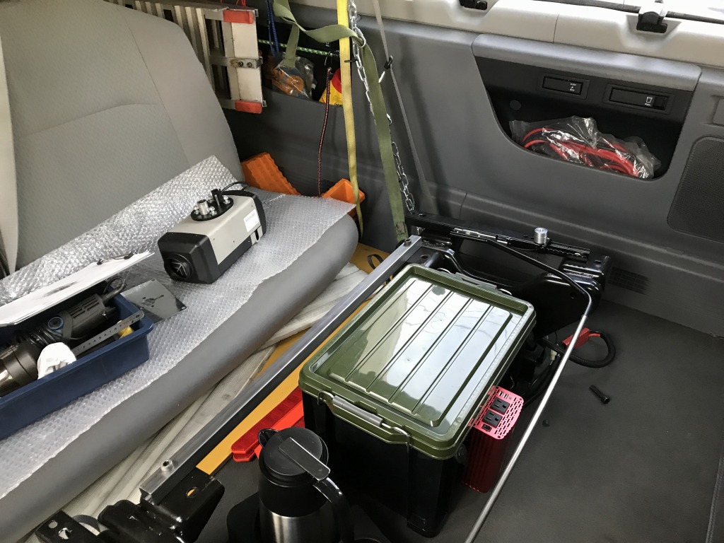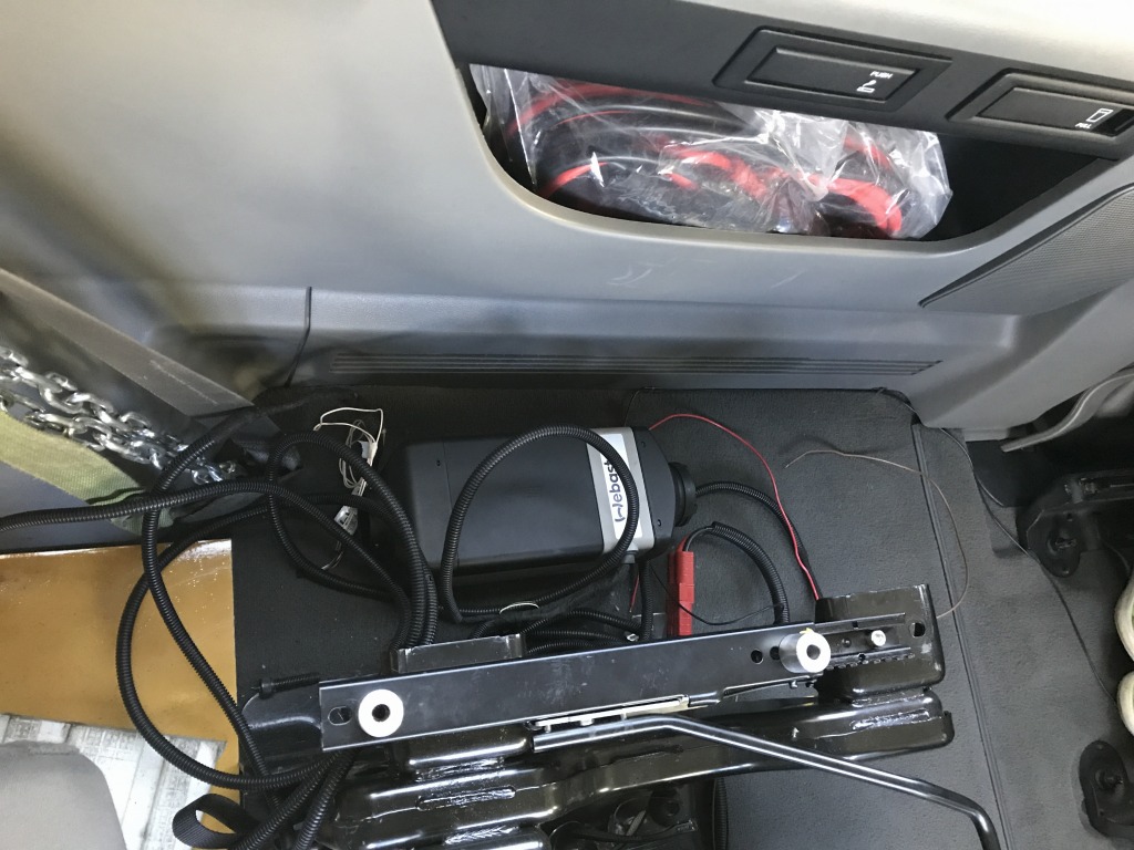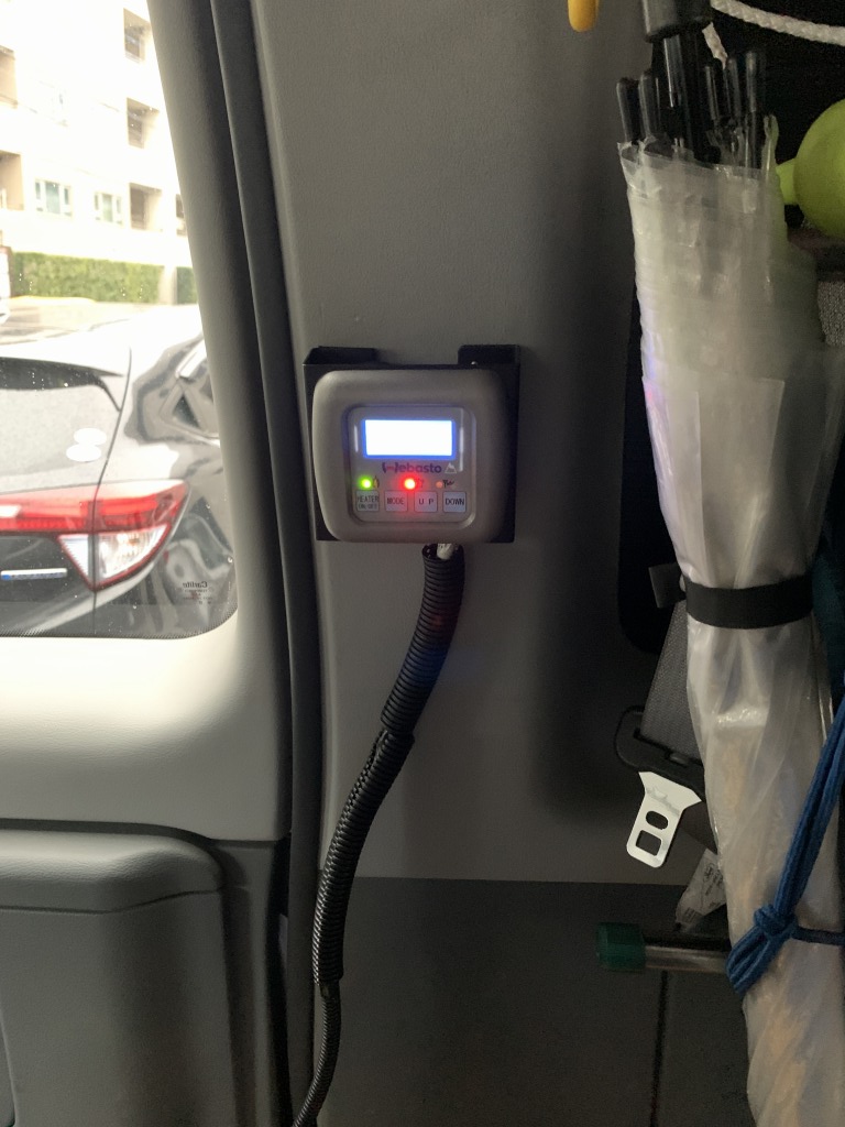 今回のものは2kWの製品ですが、広い室内が充分に暖まります。電源はサブバッテリーから供給されるのでバッテリー上がりの心配もありません。これで一晩中暖房することができるようになりました。燃費もかなりいいそうです。