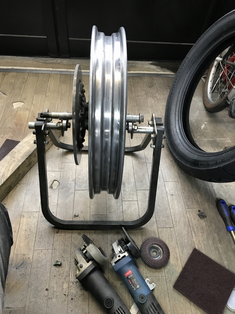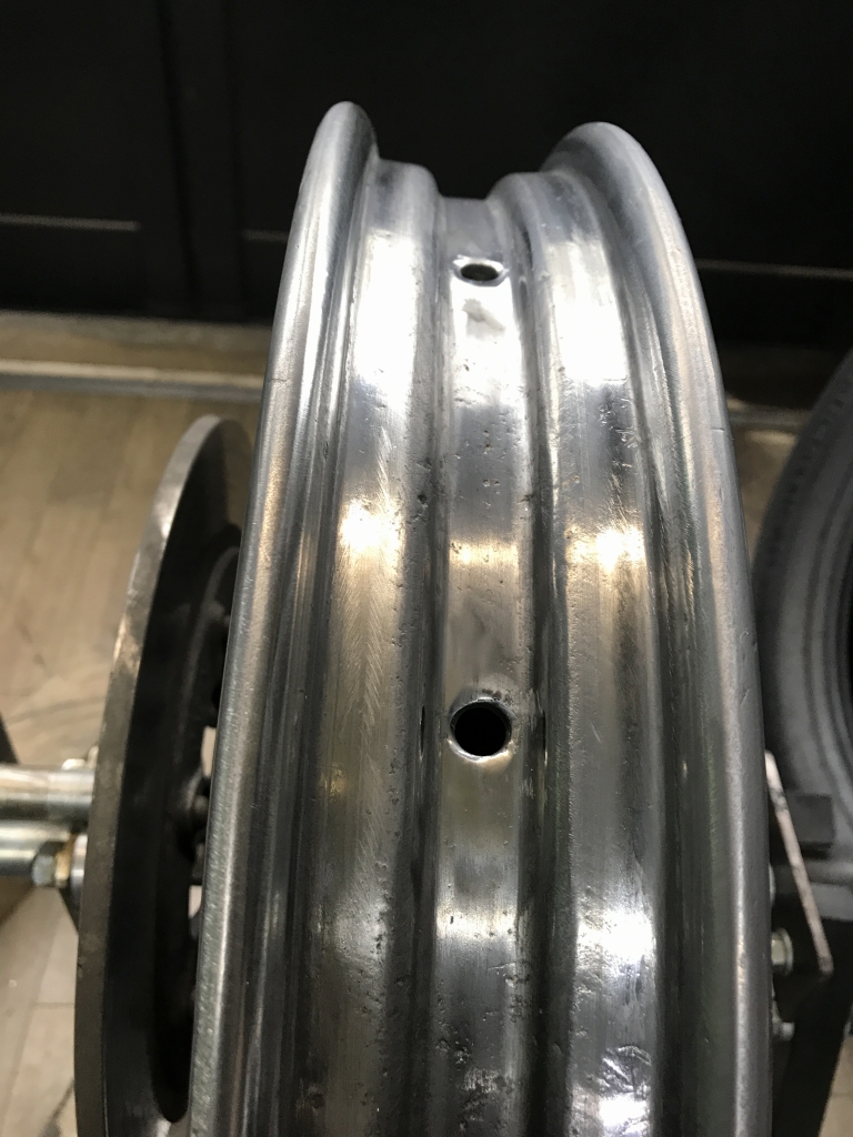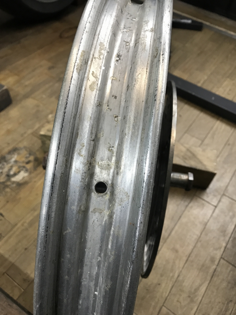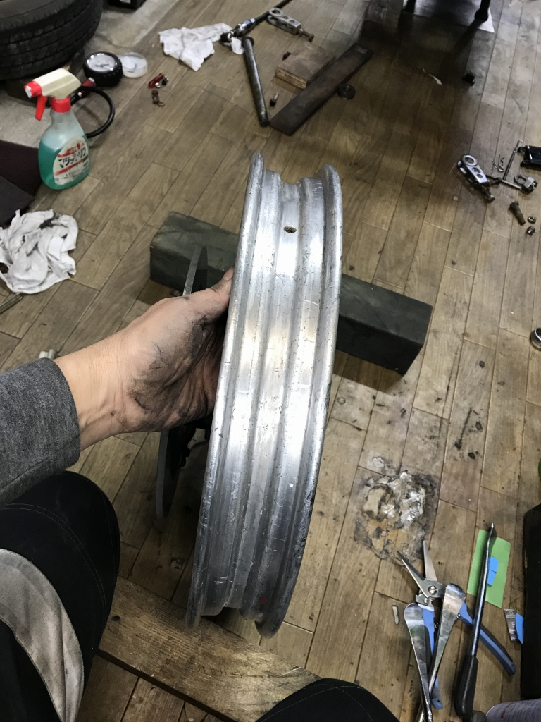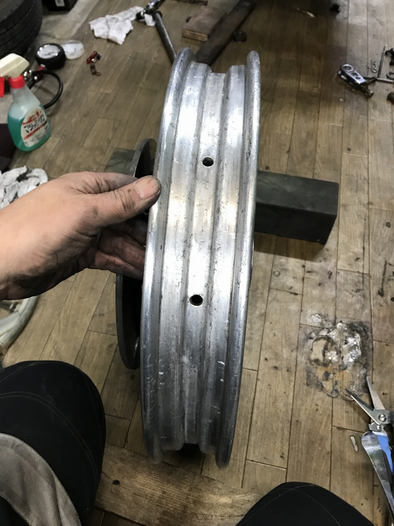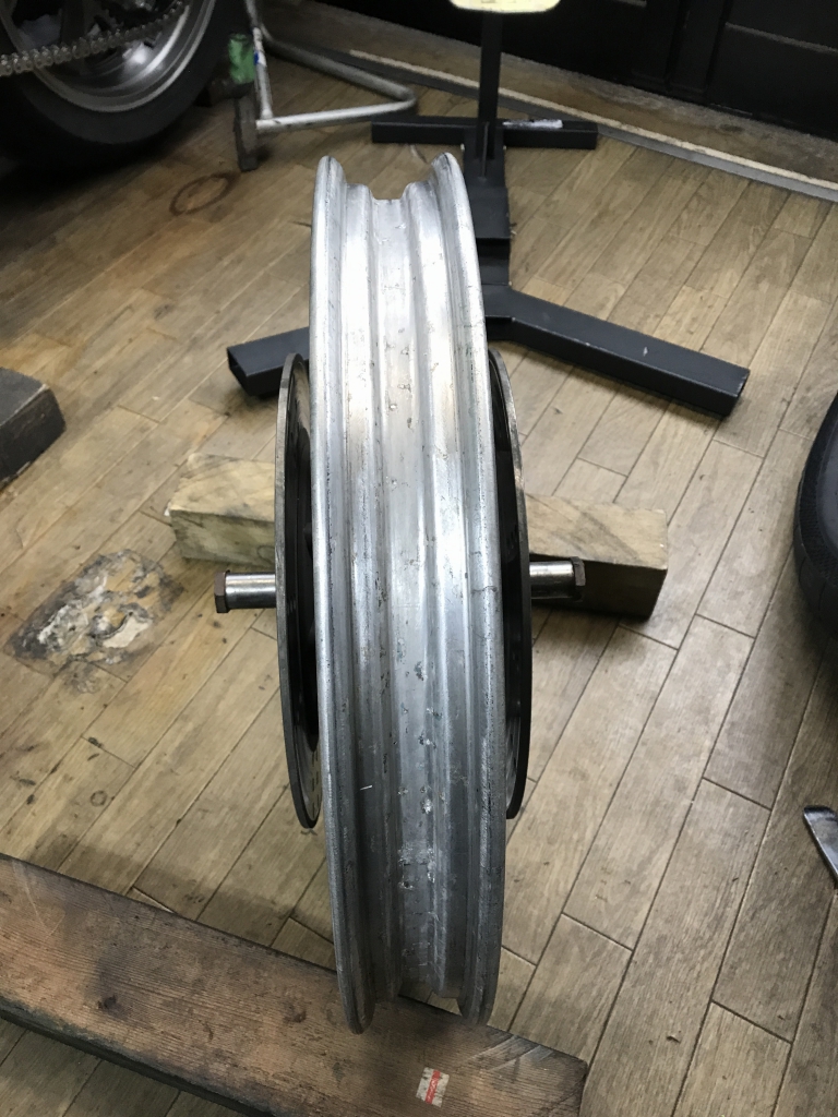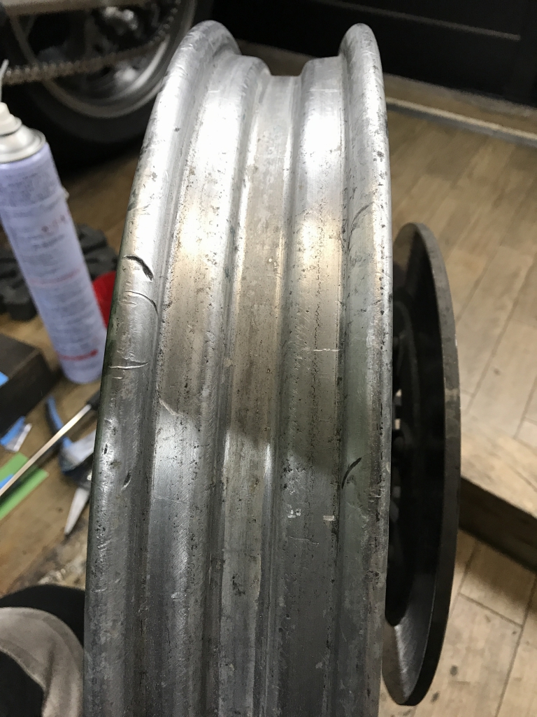 全面に渡り深い傷が無数に有ります。このままではチューブレスタイヤでエア漏れしかねないので研磨します。