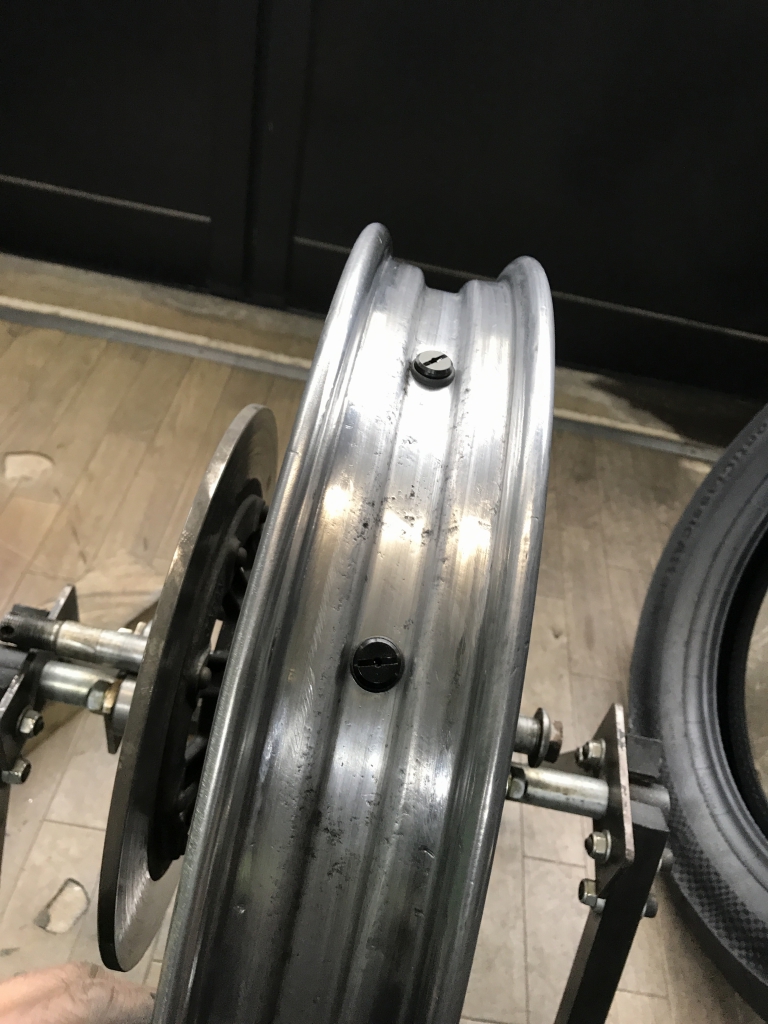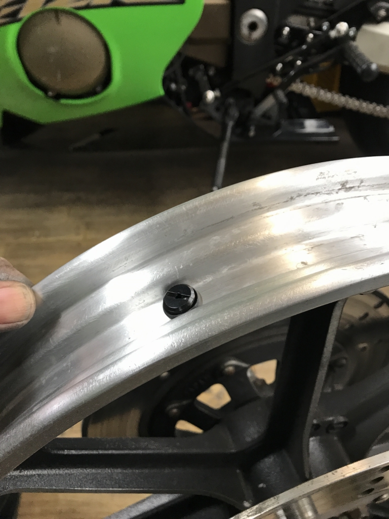 研磨後、エアバルブを取り付けます。今回からはチューブレス仕様です。