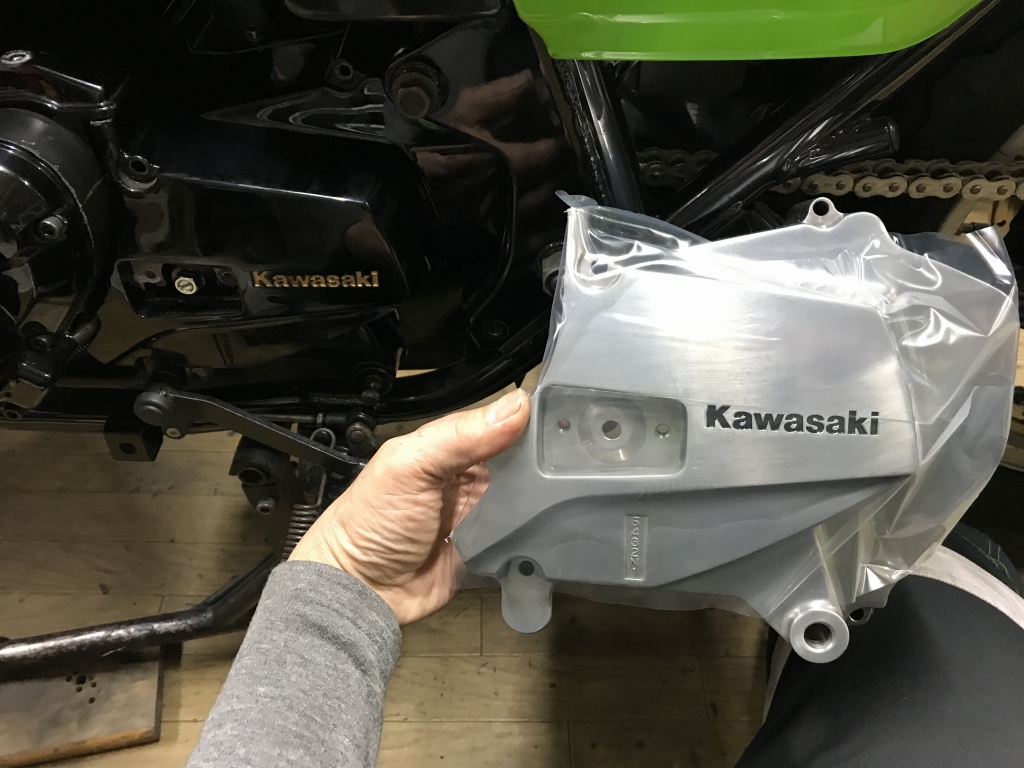 スプロケカバーの取付終了です。現在このスプロケカバーも生産終了となっています。