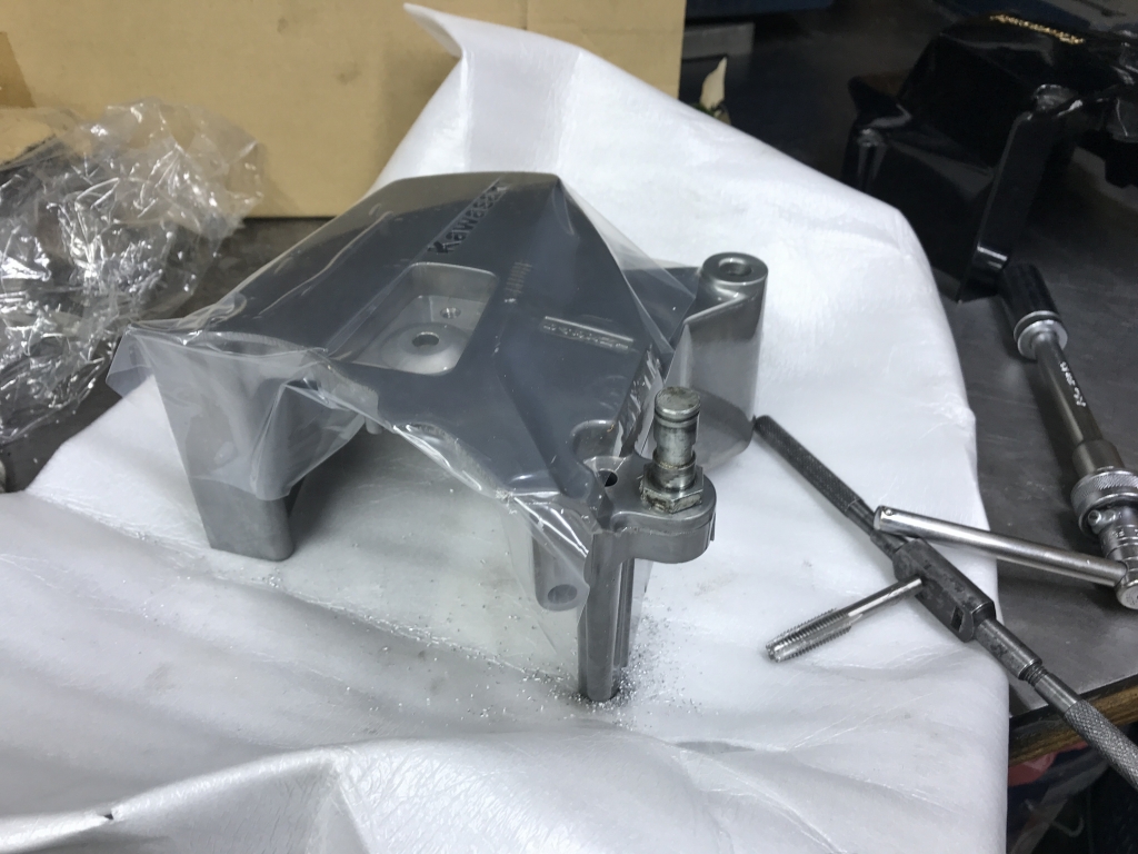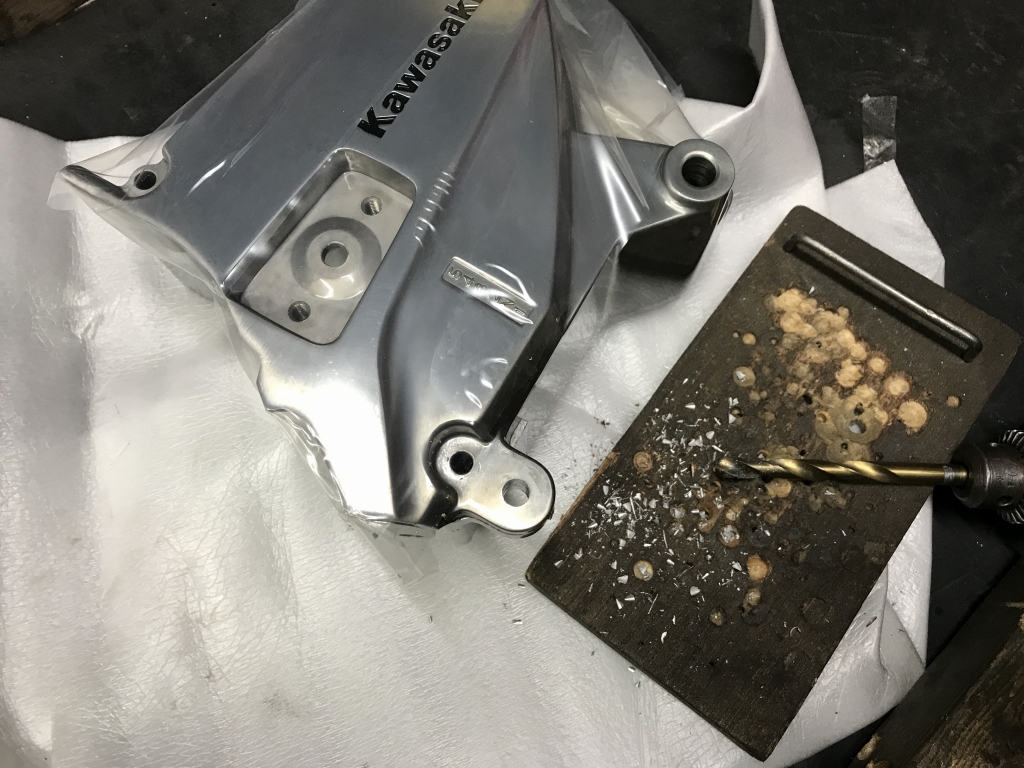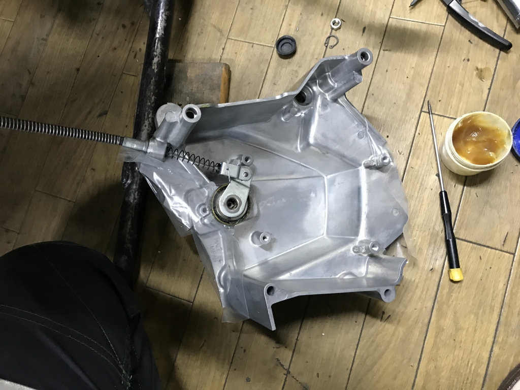 アメリカ仕様のカバーなので、シフトリンク軸の取付穴加工を追加で行います。