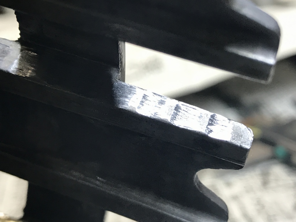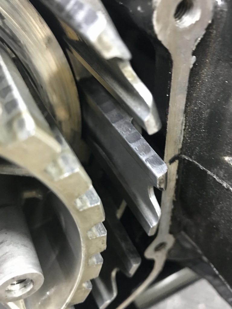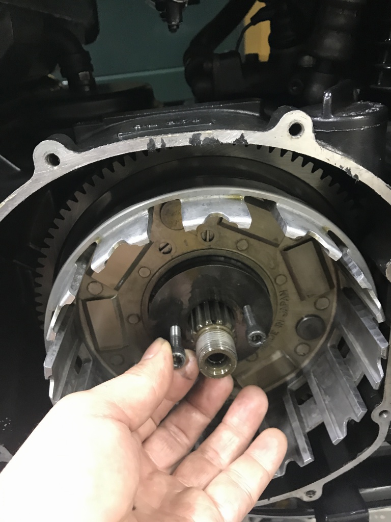 更によく見ると、クラッチハウジングははっきりと段付き摩耗があります。こちらは交換していないもよう。