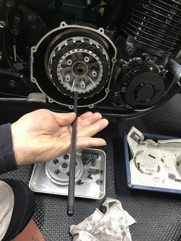 プッシュロッドもポリスの強化品を組み込みます。クラッチ板とスプリングは問題無さそうなので継続使用します。