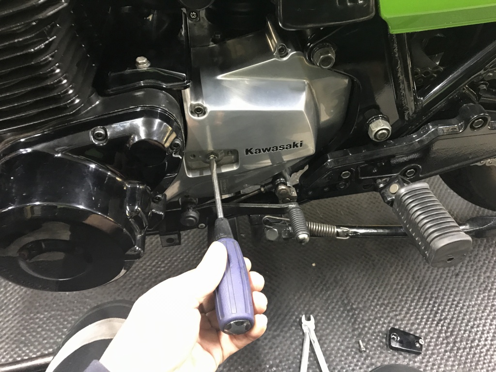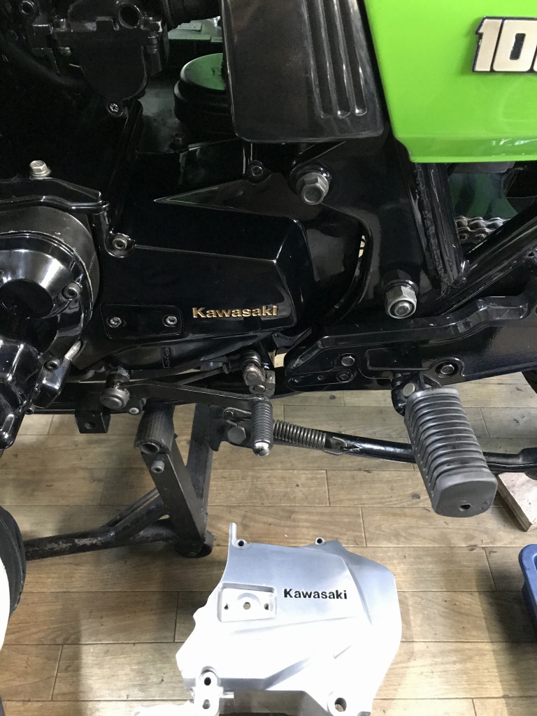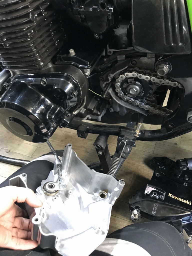 シフトシャフト穴の摩耗が大きくて新品交換したスプロケカバーですが、J用でシルバーなので外して塗装することに。
