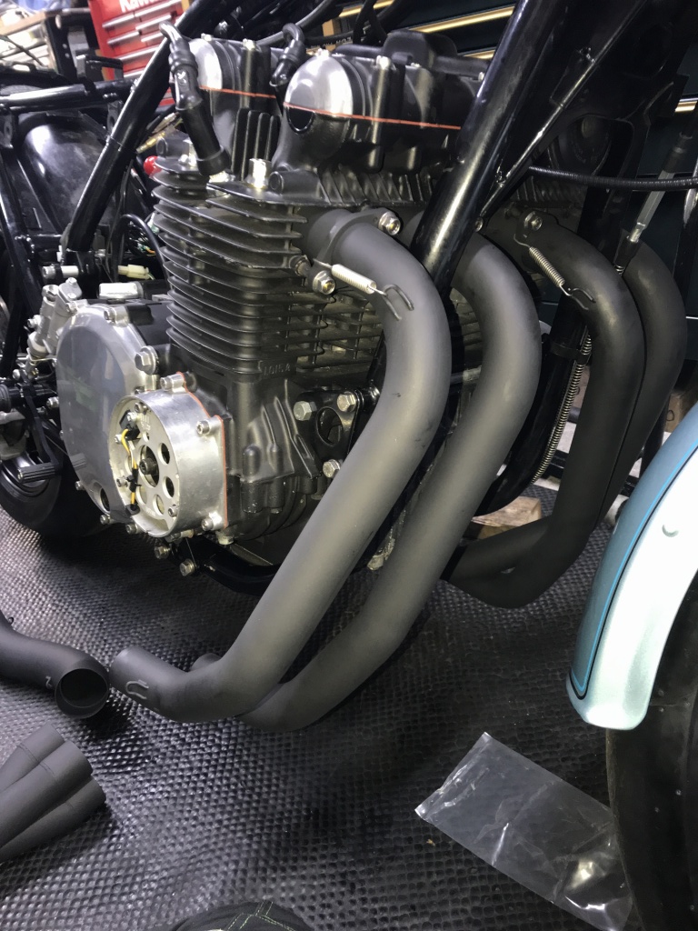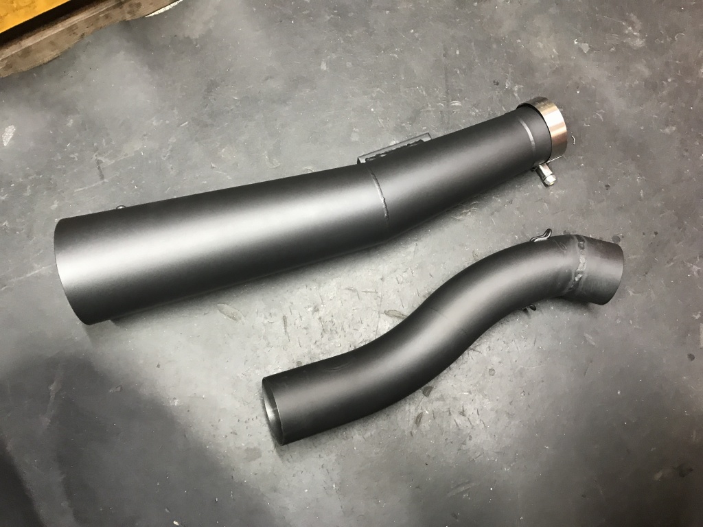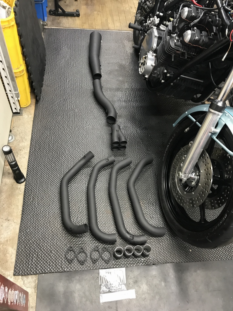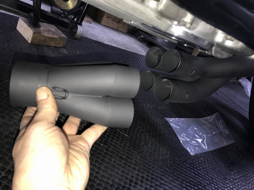 ワークスタイプの特徴的な中間パイプです。ロングタイプはこの部分が長くなっています。アップ形状もこのパイプの曲がり具合で変化させています。
