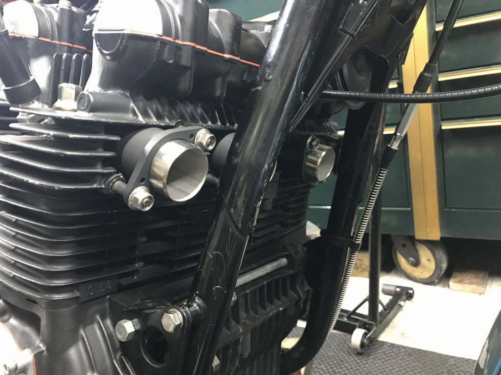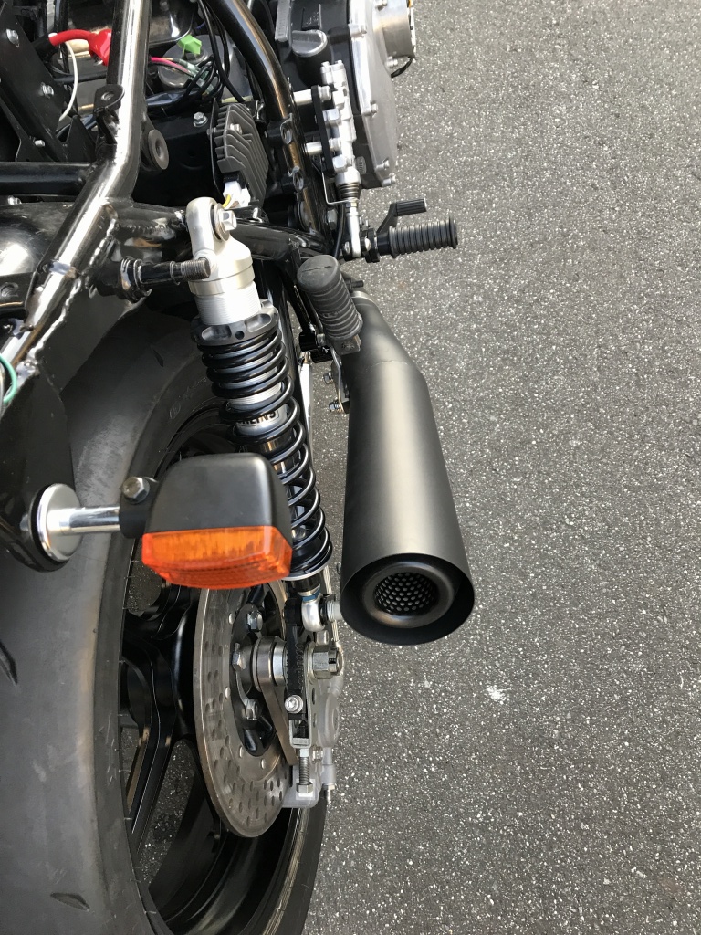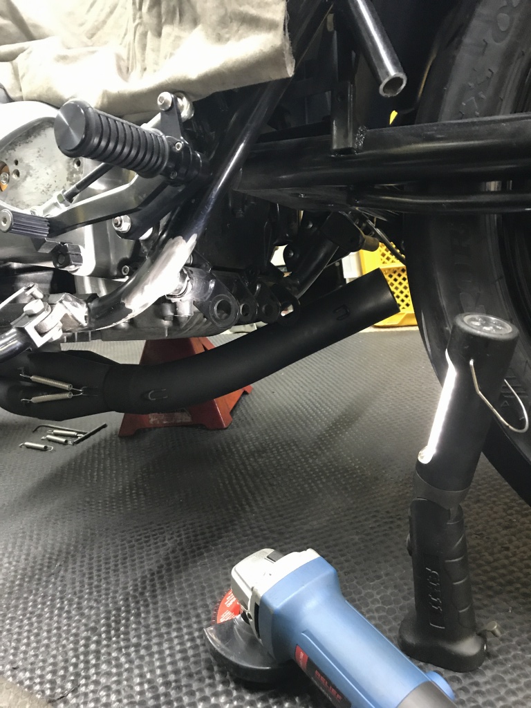 マフラーカチ上げ加工のご依頼です。バイクはオーナーさん自ら製作中のもの。