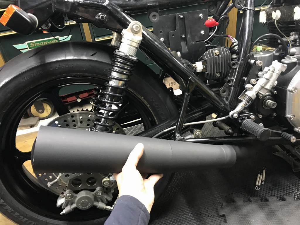 カチ上げが完成したマフラーを取り付けます。