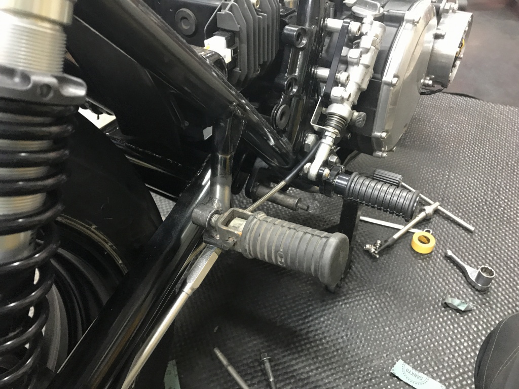 サイレンサーとの間隔をみながら、タンデムステップの位置を決めます。