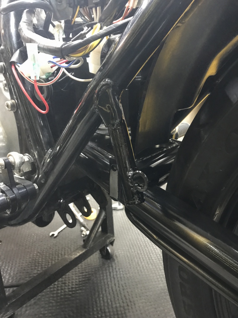 ノーマルマフラーステーは左右ともカットします。