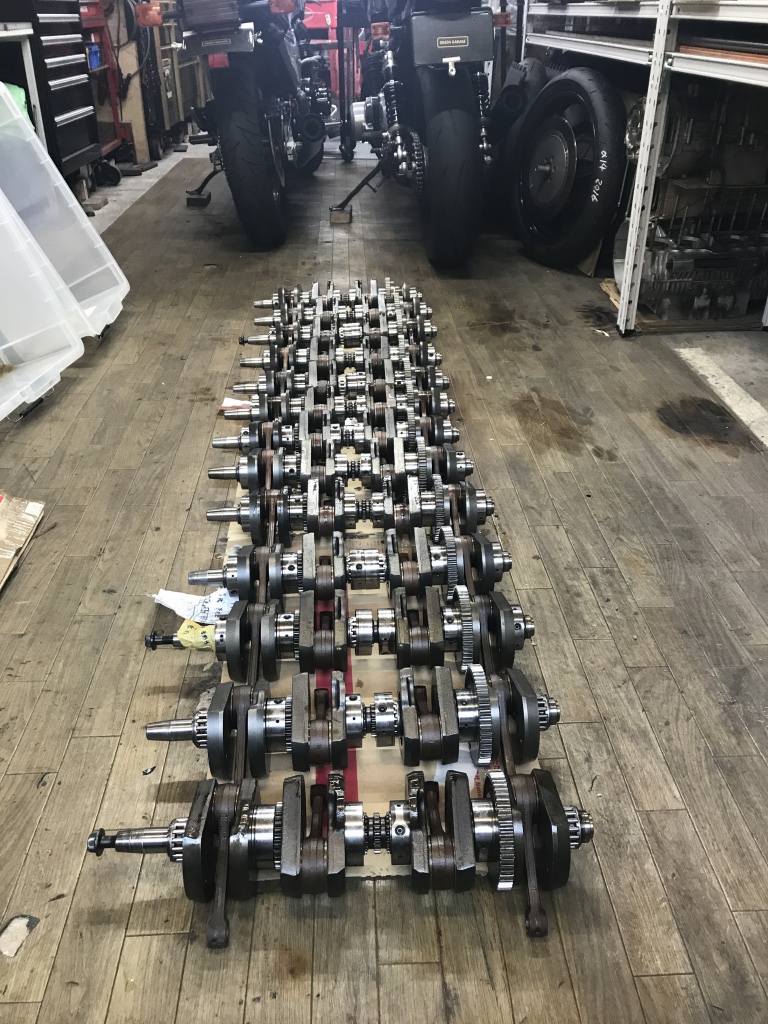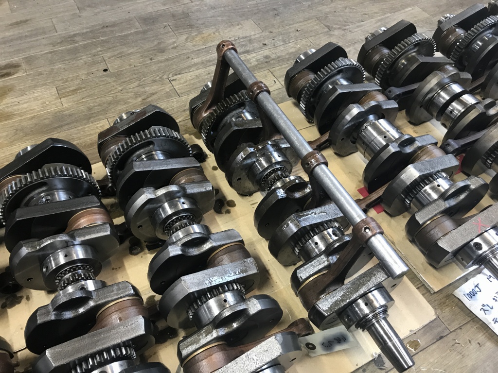 今日は在庫のクランクを調査します。J系のクランクを全て並べてみました。 色々な理由で保管することになり貯まったものですが、ここで半分くらいに整理しようと思います。