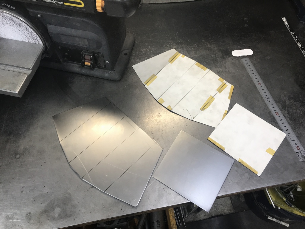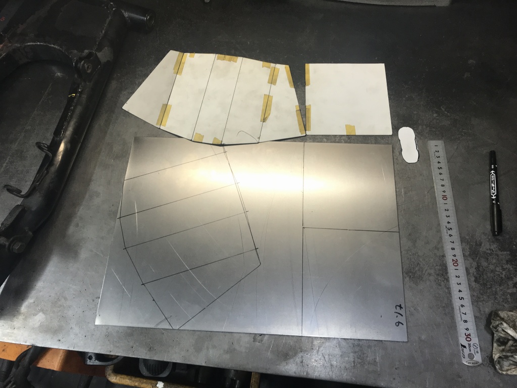 初めにキャッチタンク部分の部材を切り出すのでスチール板にマーキングします。