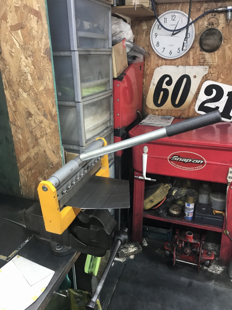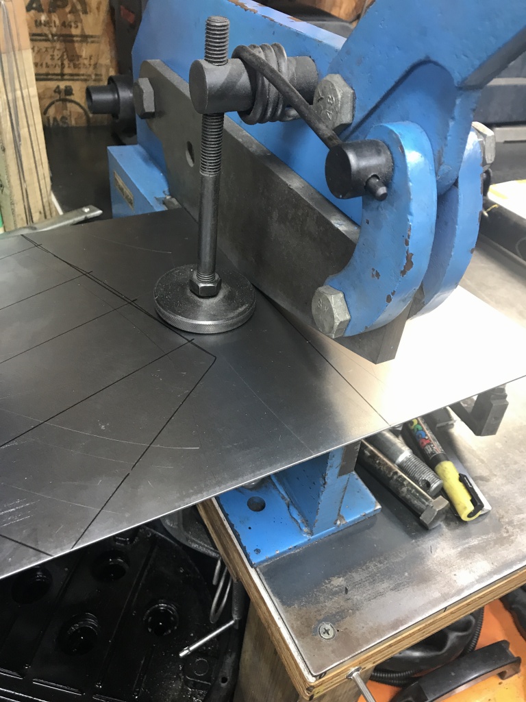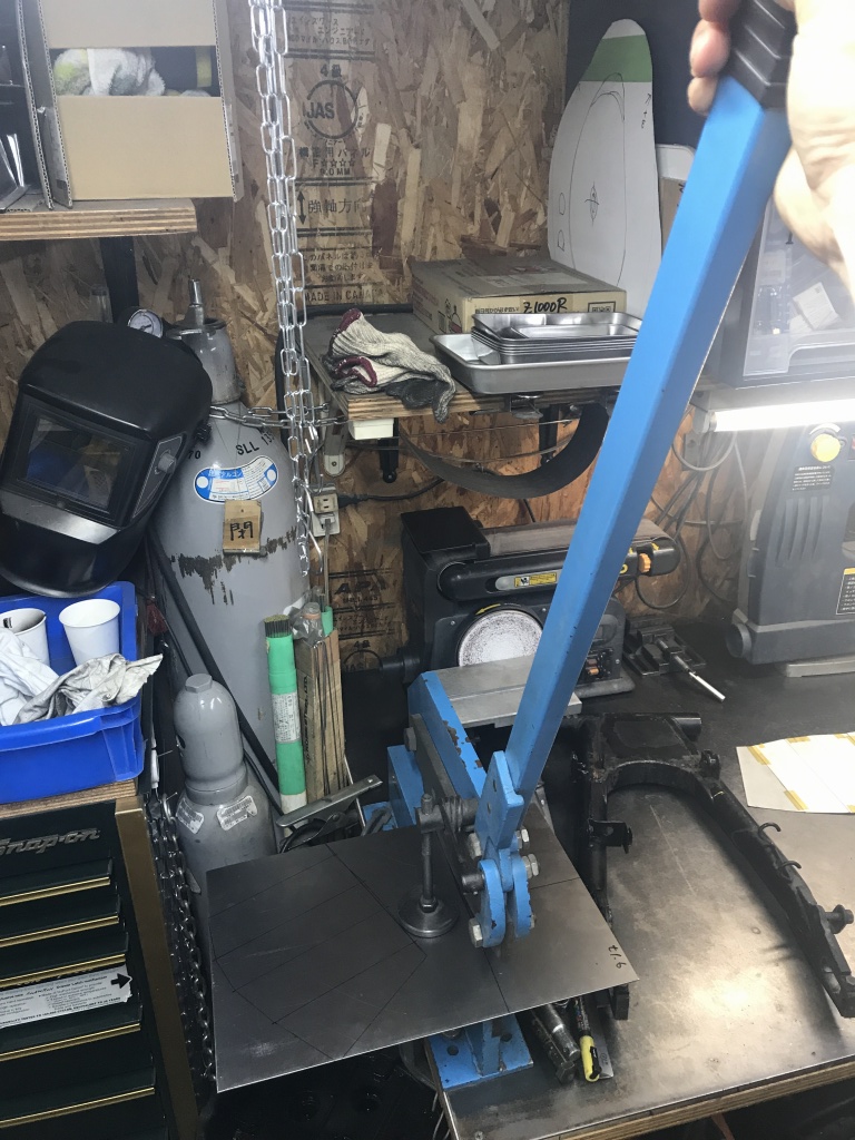 手動のシャーリングですが、厚さ2ミリくらいの鉄板ならサクサク切れます。