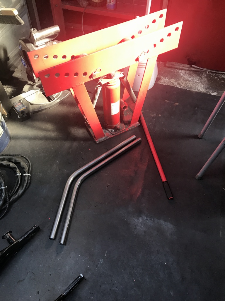続いてトラス部分のパイプ材を切り出し、パイプベンダーで曲げ加工します。