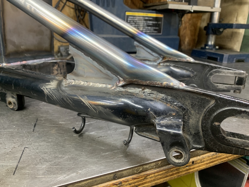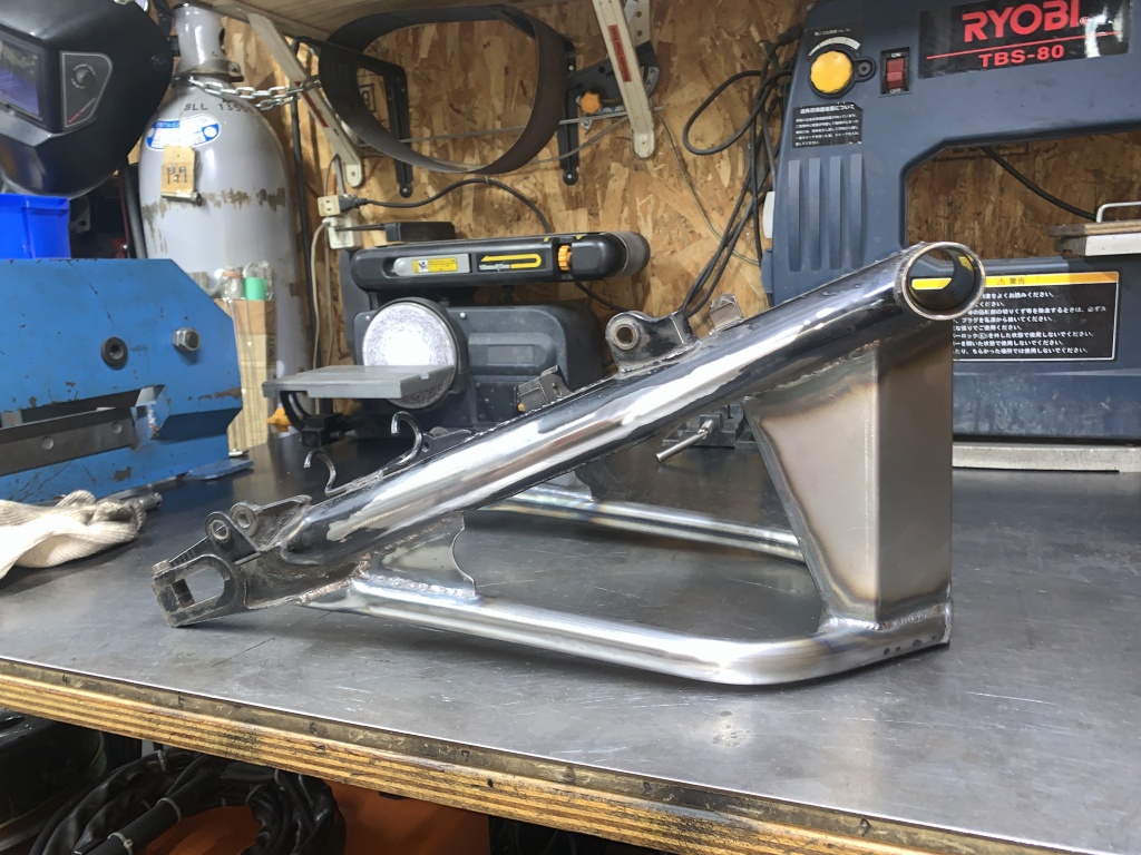 鉄S1スイングアーム製作の続きです。最後に三角補強板を取り付けます。