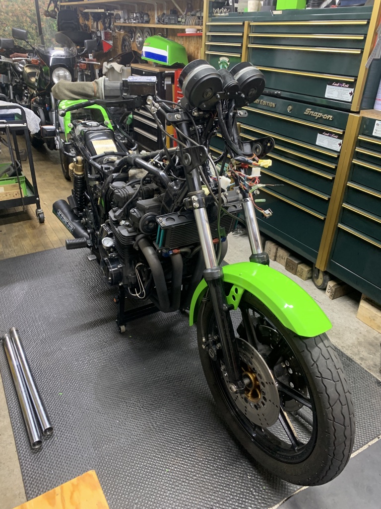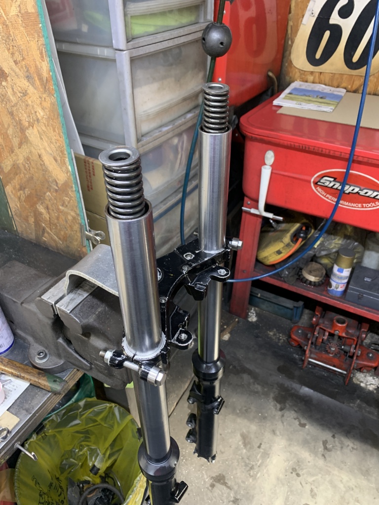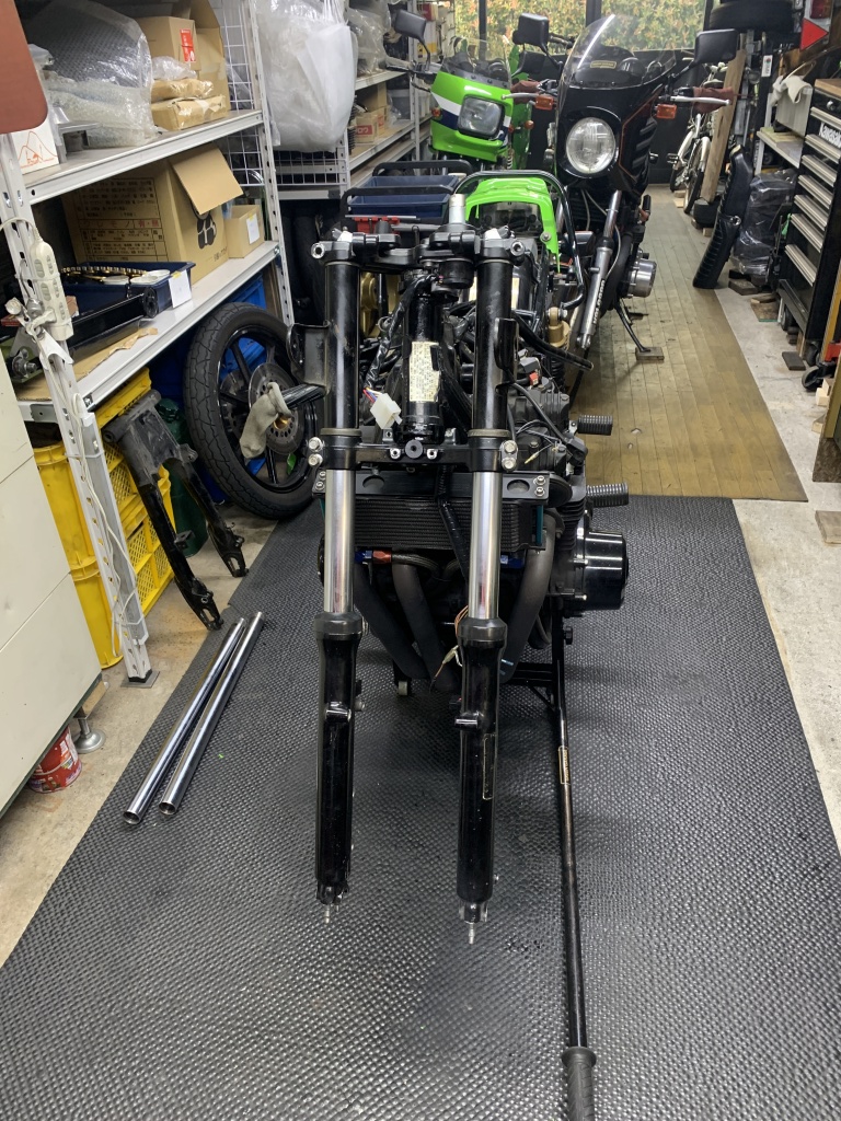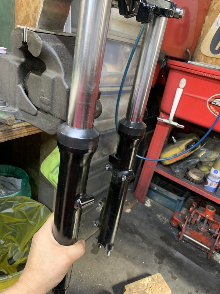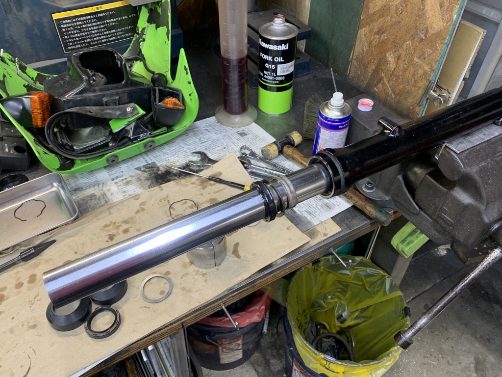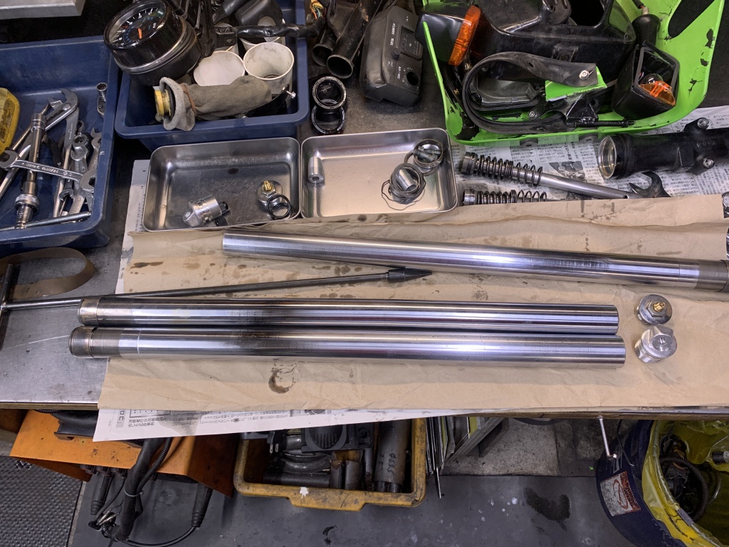 交換用にはストックのZ1000J1純正フォークから部品取りしたインナーチューブを使います。