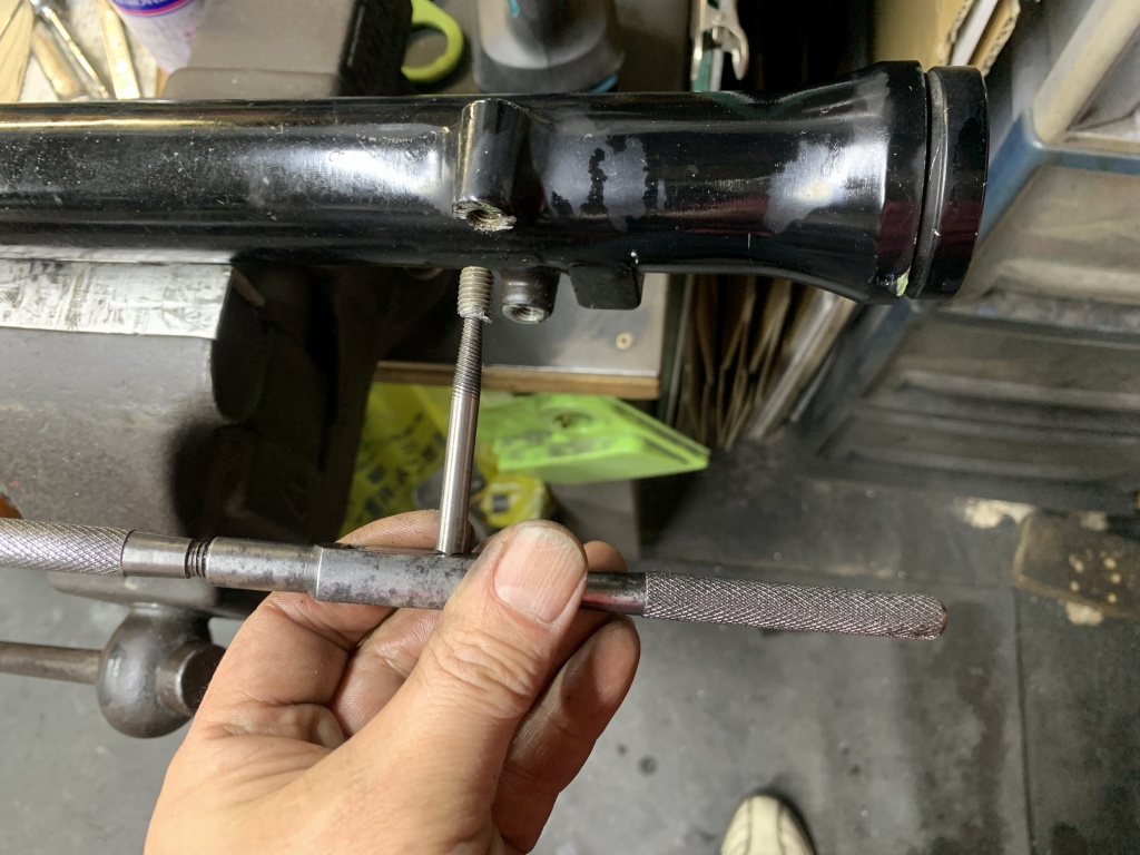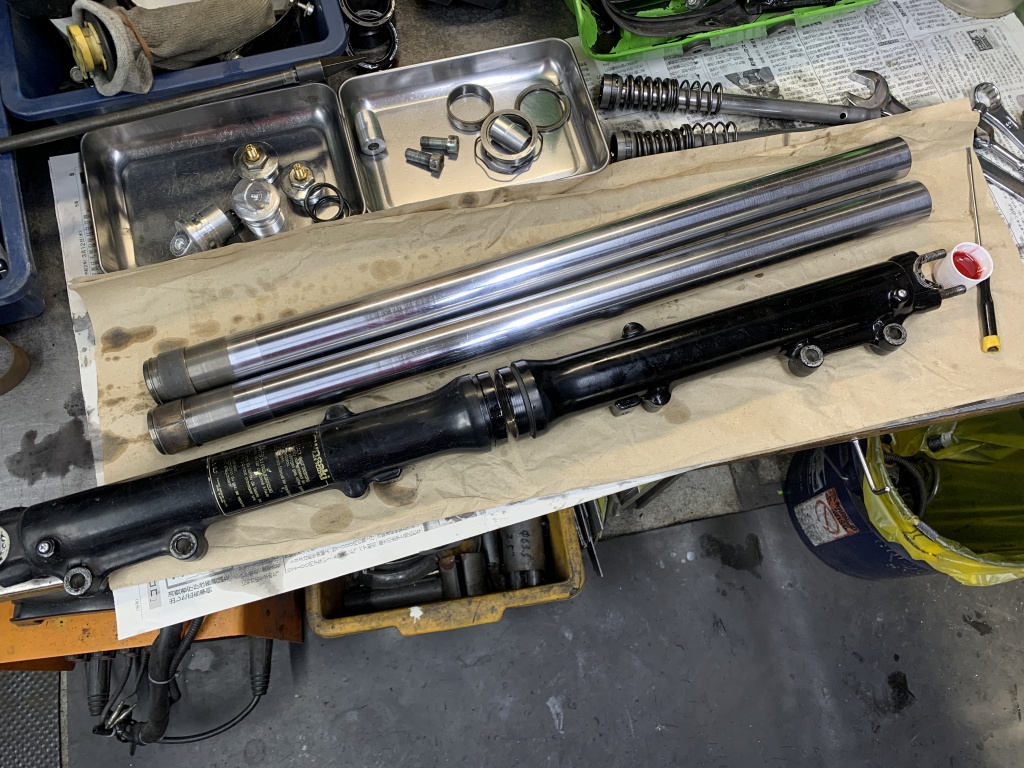 事故車修理の続きです。曲がったインナーチューブをストックの部品と組み替えます。