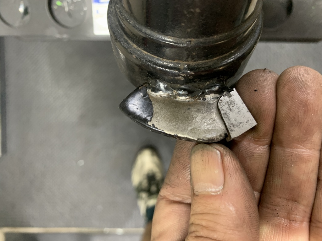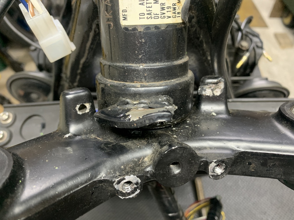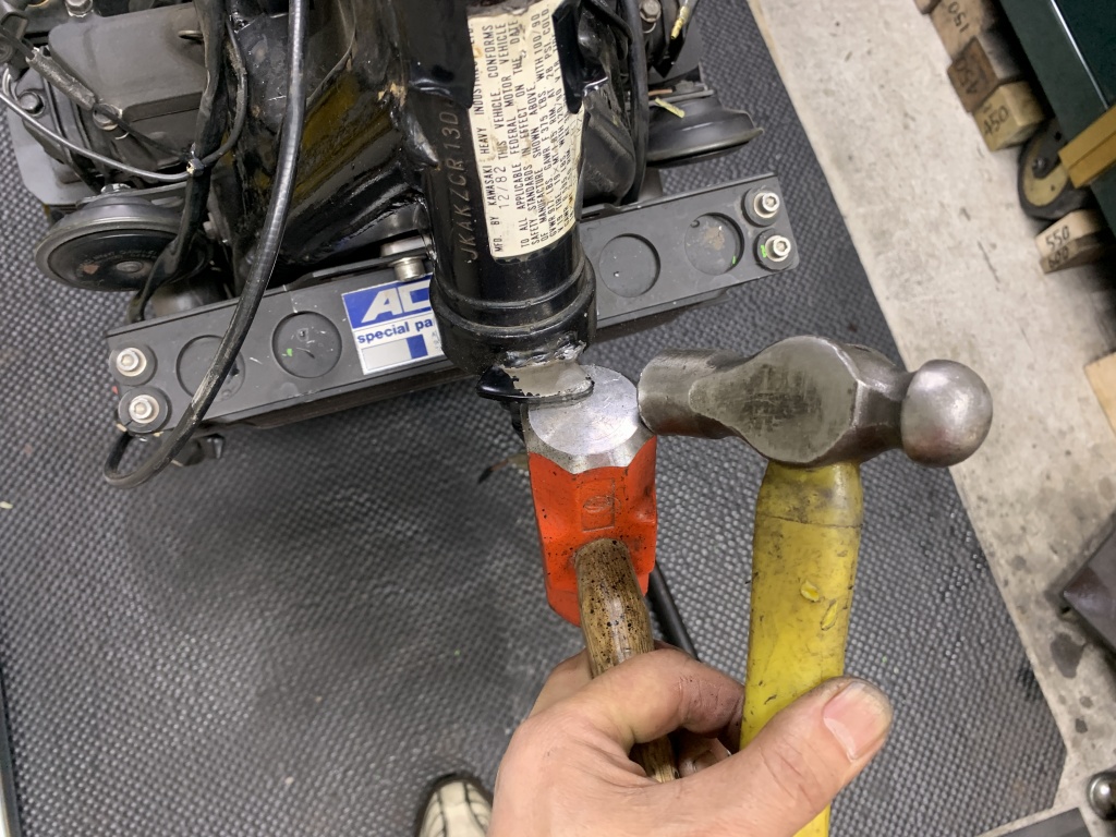 次に、 転倒の衝撃で曲がったハンドルストッパーを修理します。