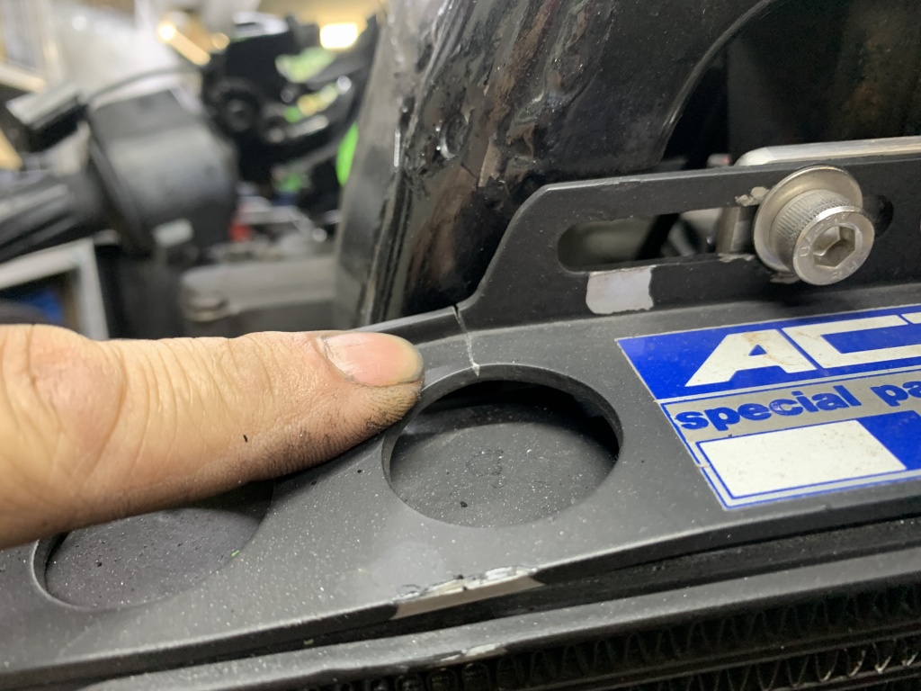 曲がった純正フロントカウルステーも希少品なので修正します。
