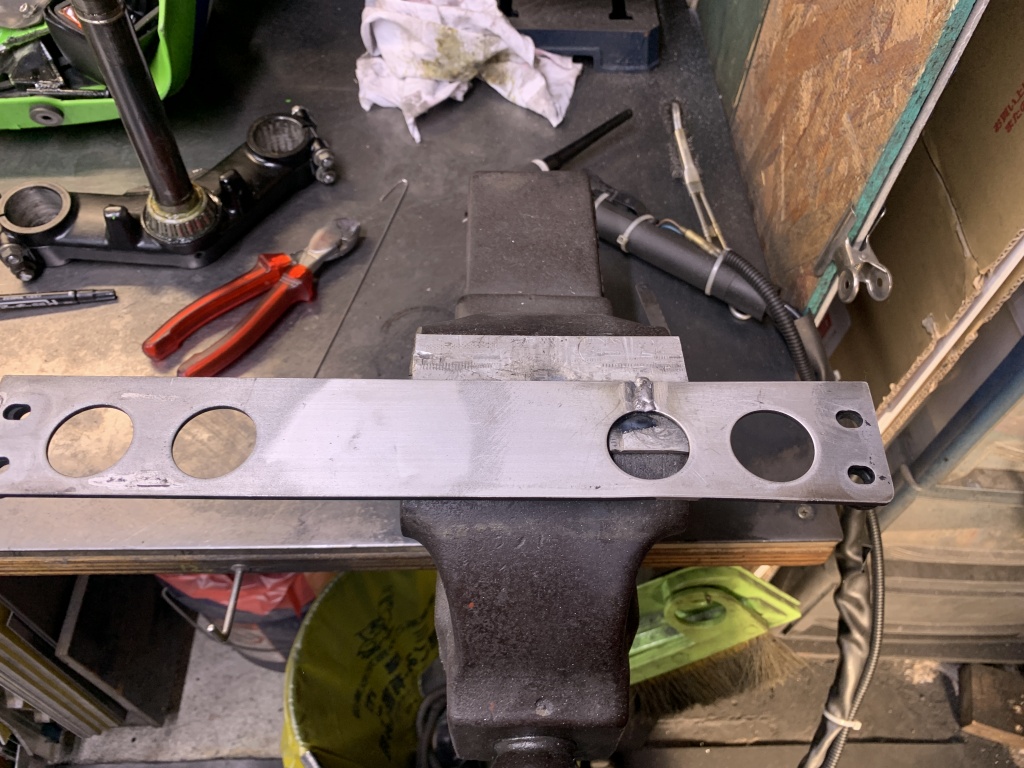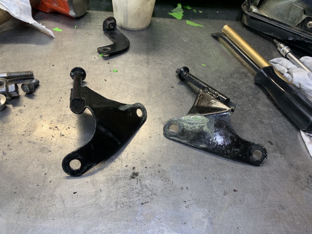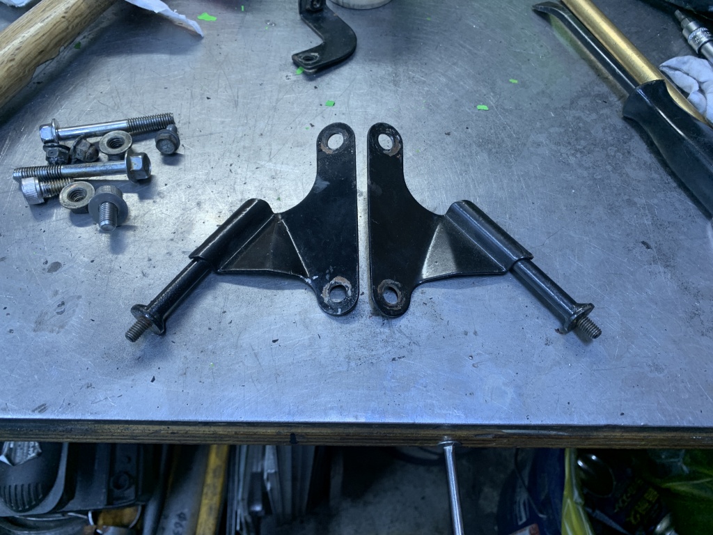 曲がった純正ヘッドライトステーも希少品なので修理します。