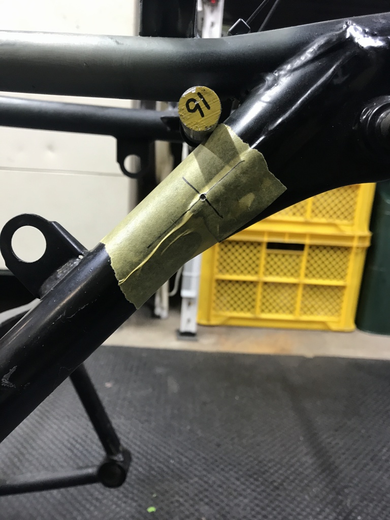 モリワキ角のサス受けの位置はこちら。