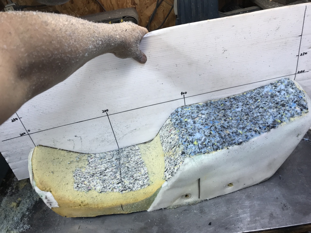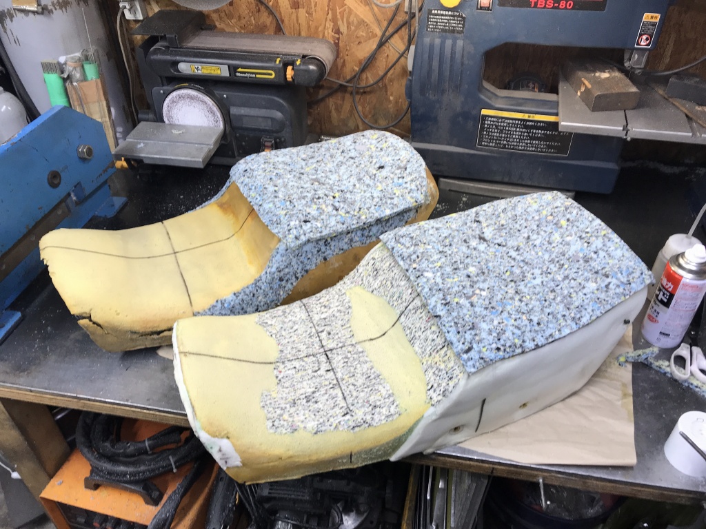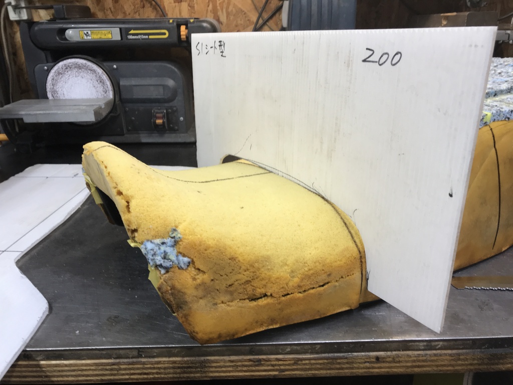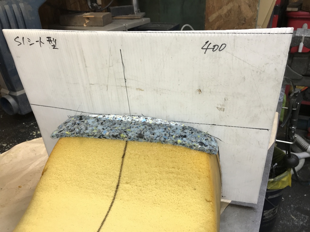 ようやく3個のシートが成型できました。テンプレートを使ったことで形状の再現性はだいぶ良くなりました。このあとシート工場に持ち込んでシート表皮の仕様などを打合せし、表皮の貼り込みも依頼する予定です。