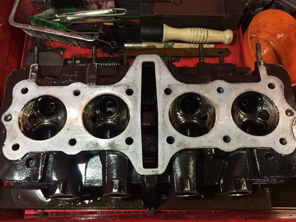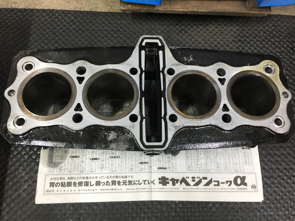 シリンダーもガスケットを剥がしてオイルストーンで面出ししておきます。