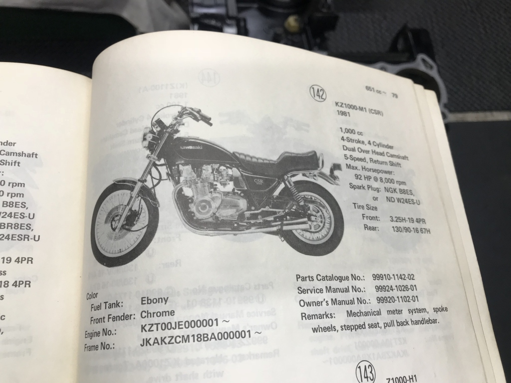 シリアル番号とその色から、KZ1000CSRのケースのようです。