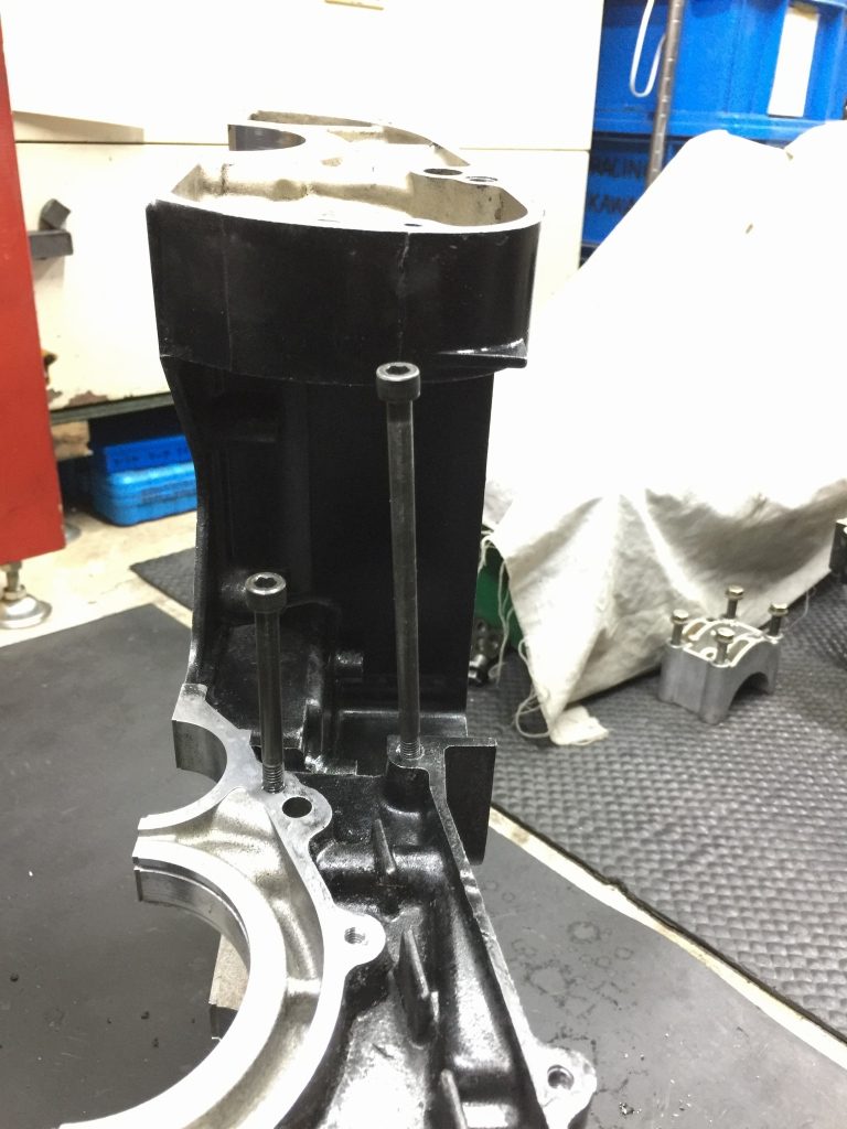 点検済のクランクをセットします。カムチェーンも新品です。