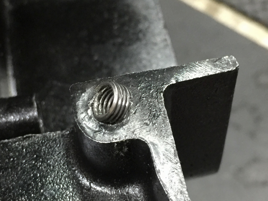 スプロケカバー取り付けネジ穴のひとつはヘリサートが入っていましたが、