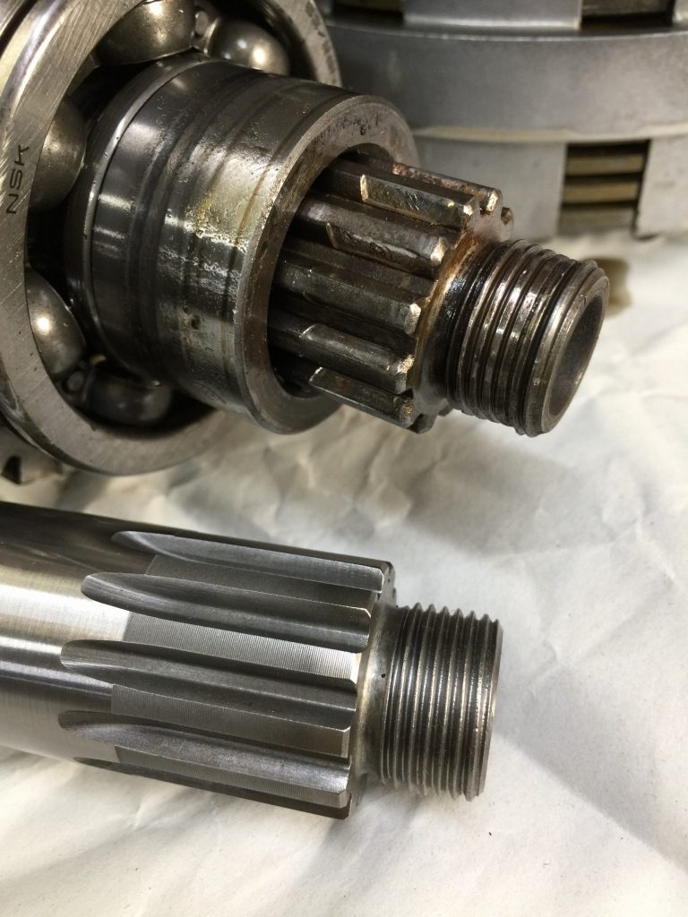 新品のアウトプットシャフトと比較すると、傷み具合がよくわかります。