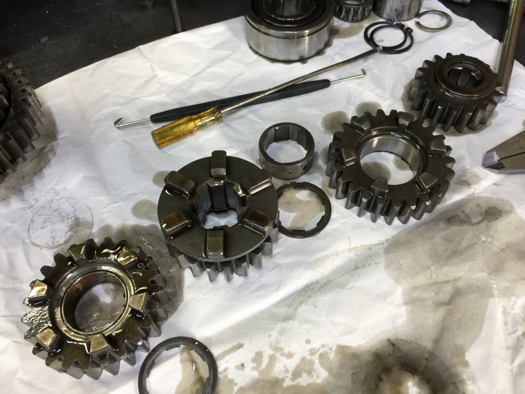 ベアリングを交換し、ギヤを組み立てます。